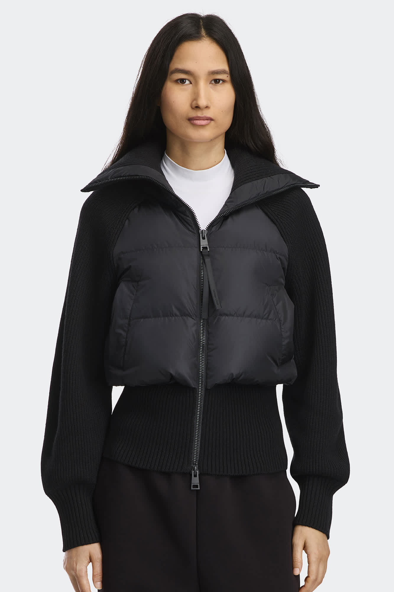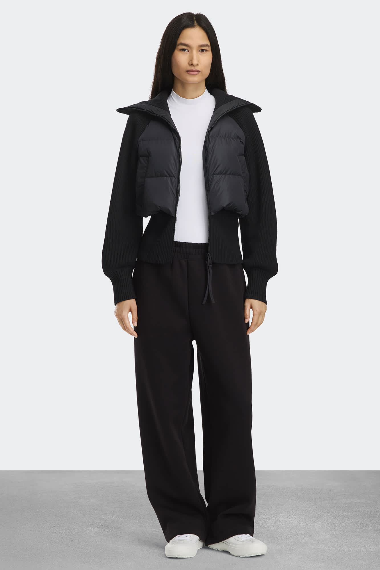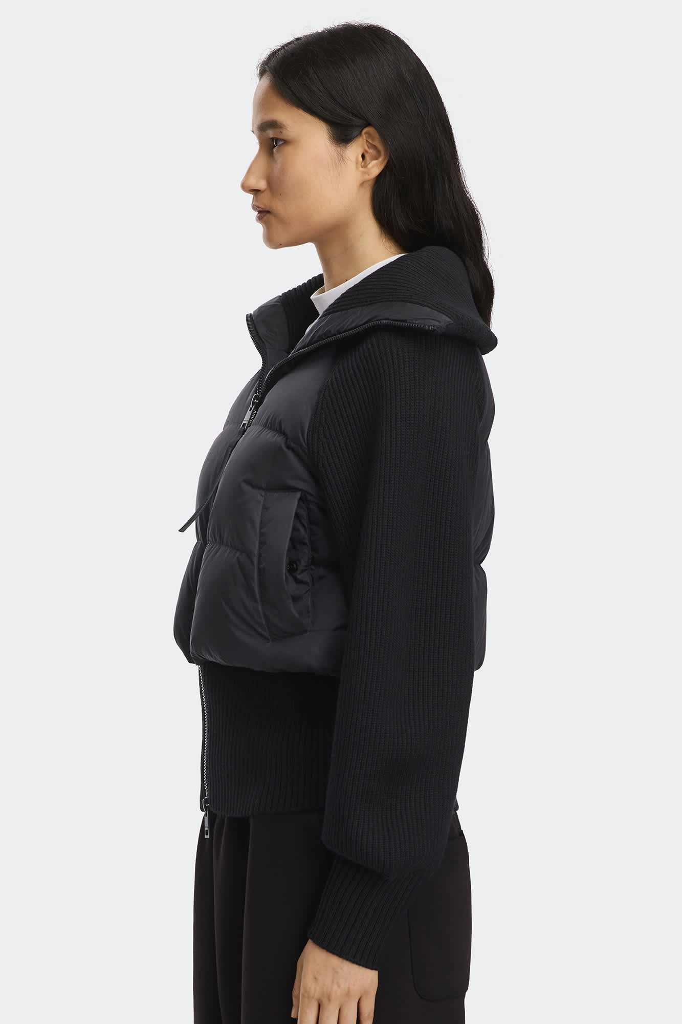 Unzip the collar for an off-the-shoulder look. Playing with proportions is highly encouraged.