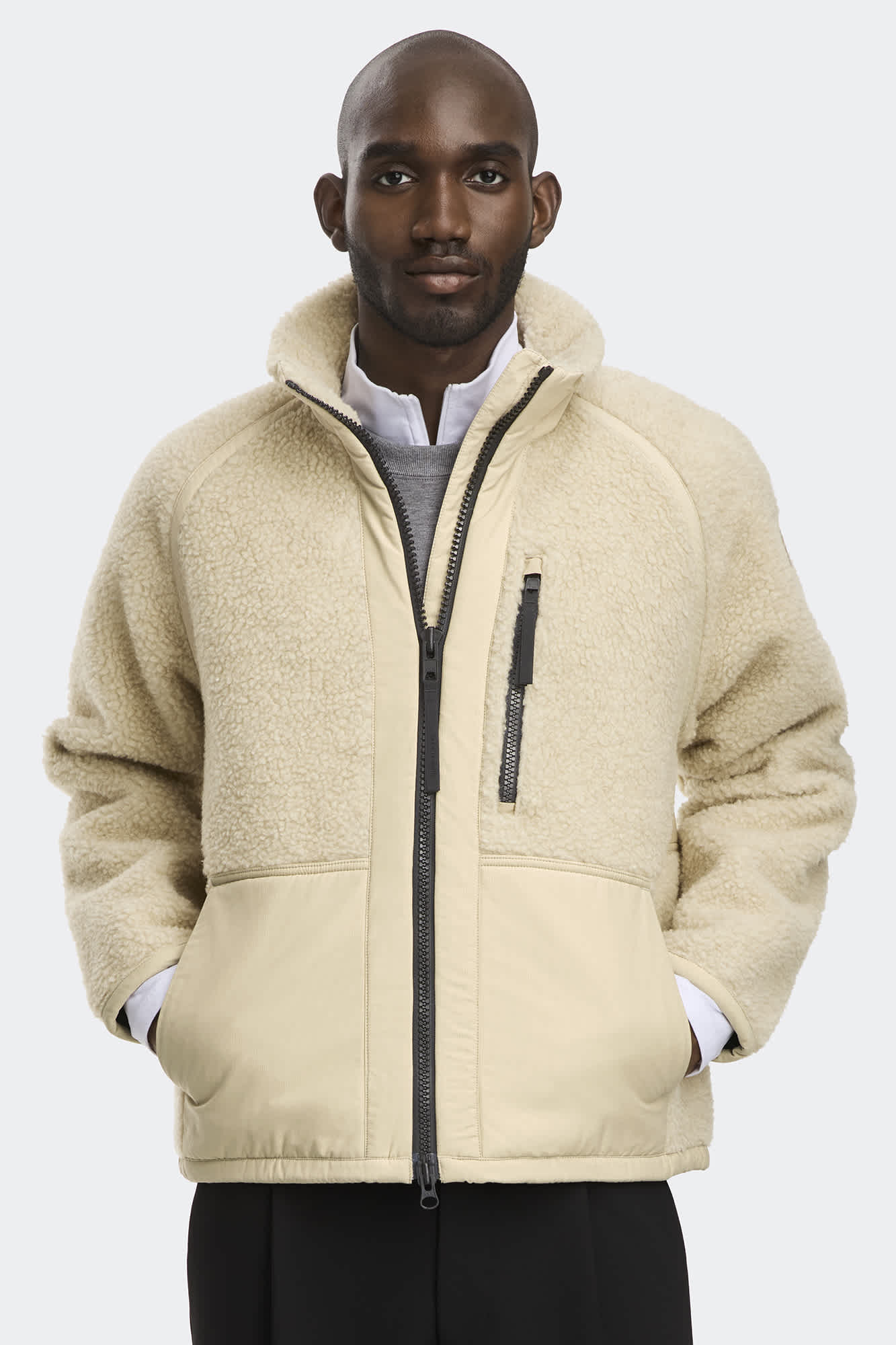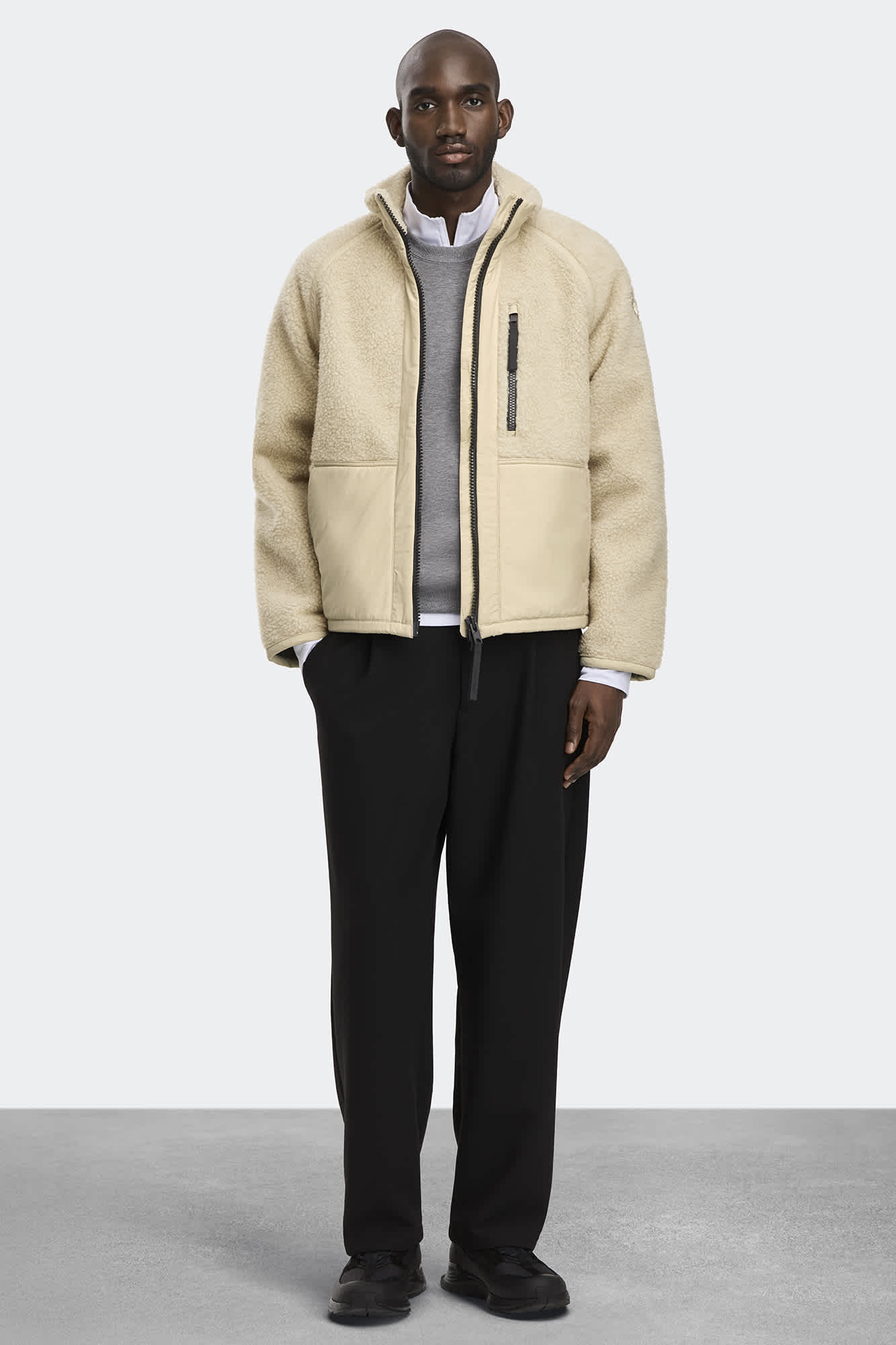A relaxed fleece with hits of mixed media for effortless looks.