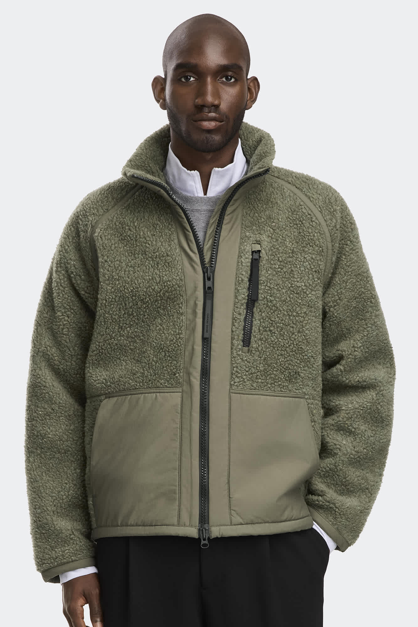 A relaxed fleece with hits of mixed media for effortless looks.
