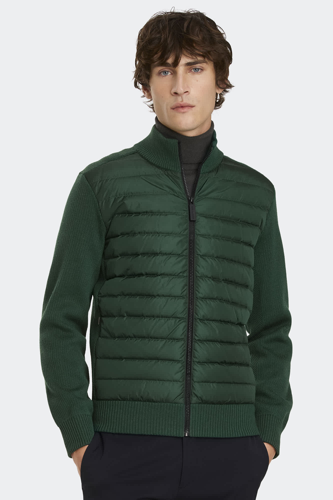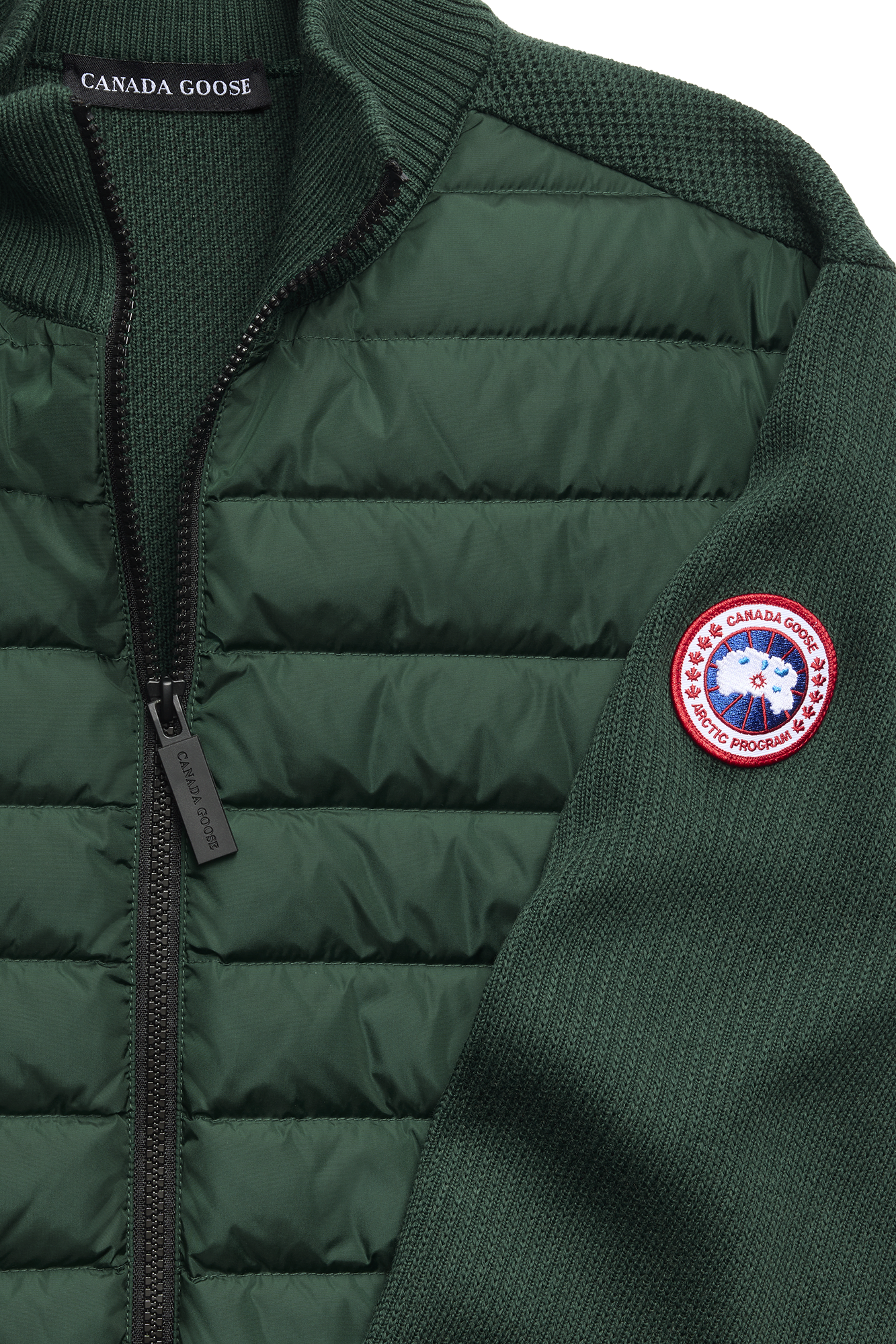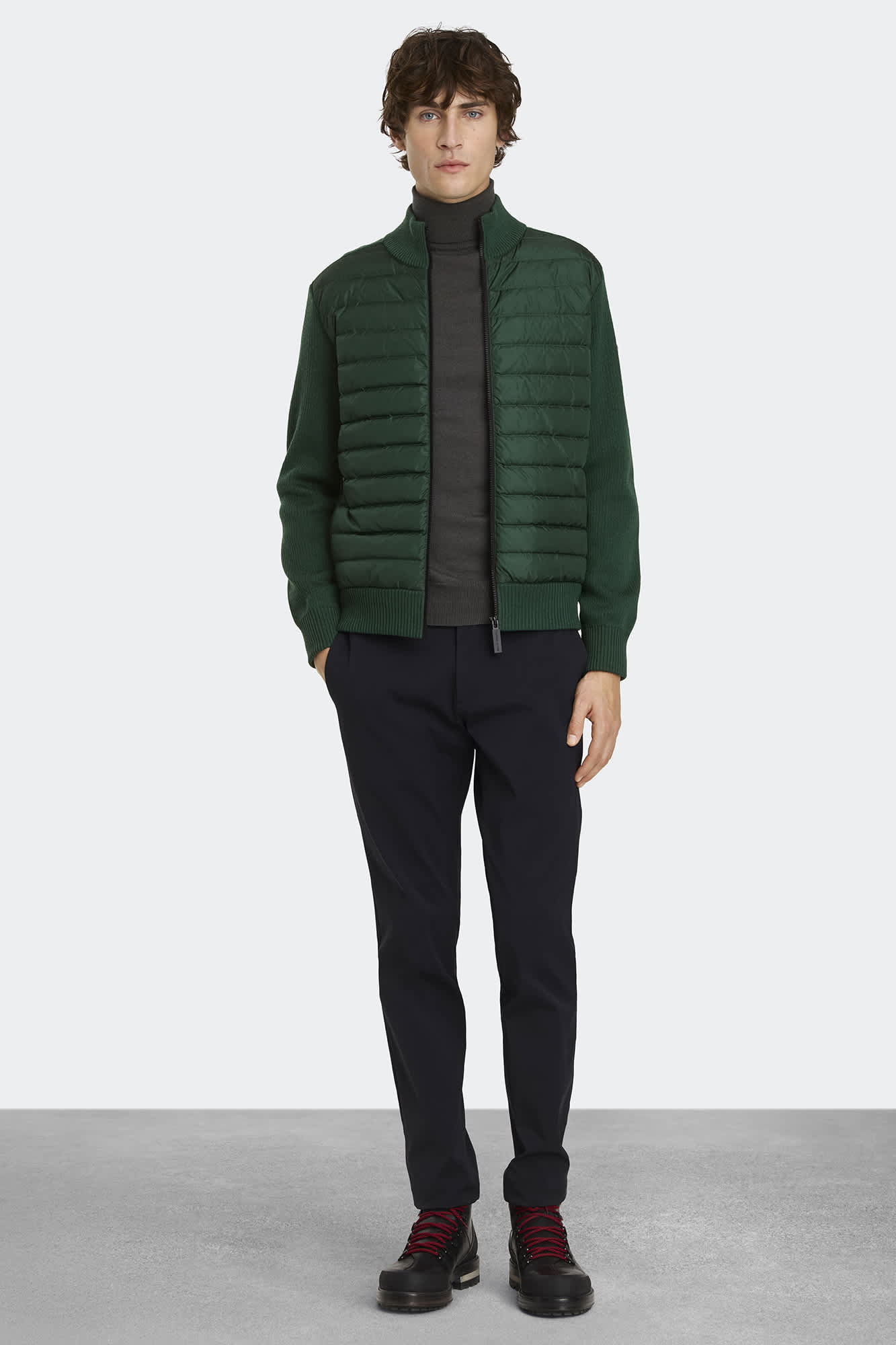 Merino wool complemented by our expertise in lightweight down. Featuring ribbed knitting at the cuffs, collar, and hem for shape retention.